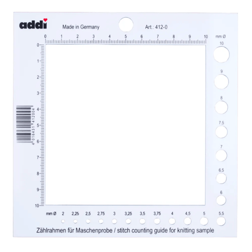 AddiThis stitch counting frame by Addi is an indispensable accessory for all who love knitting. Use it to count stitches over a 10x10cm surface, as wel...