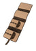 Project 14 is our XL needle case for organizing your interchangeable circular knitting needles. It features 6 pockets with snap closures to securely hold your wires. Behind these pockets, there are open compartments where you can store knitting patterns or similar items. An elastic band allows you to keep your measuring tape handy, and there are 6 holes in the leather to accommodate 3 needles. A total of 18 slim pockets for knitting tips, crochet hooks of stocking needles, keeps them organized. Finally, you have 2 small pockets with flap and button closure where you can store your scissor and other loose knitting accessories. The entire needle case elegantly folds together and fastens with a snap, making it easy to carry your essential knitting tools.