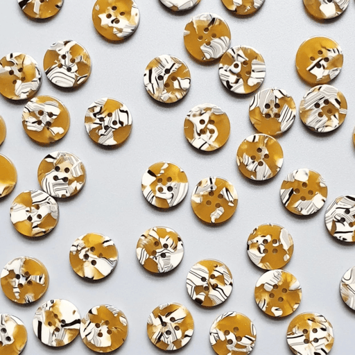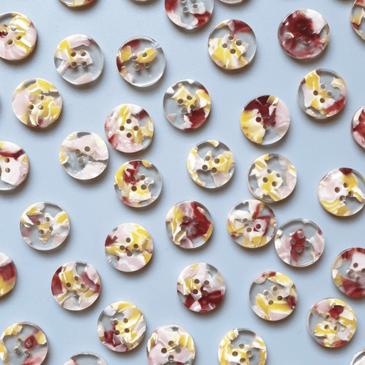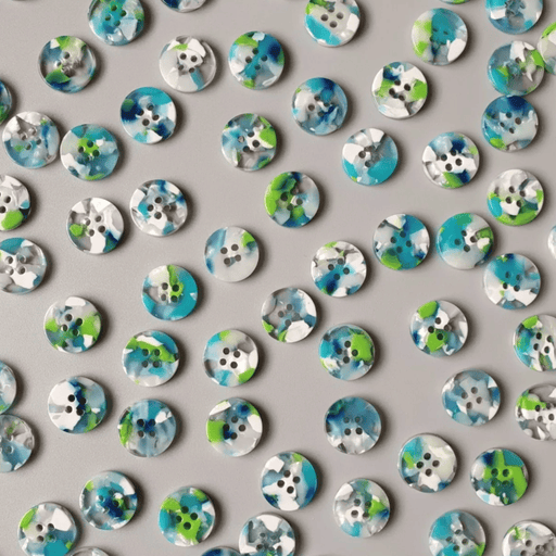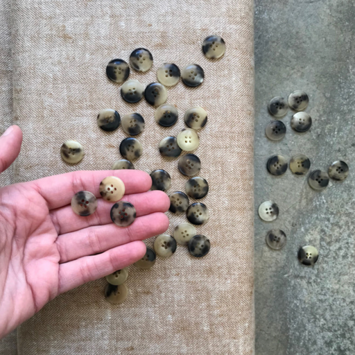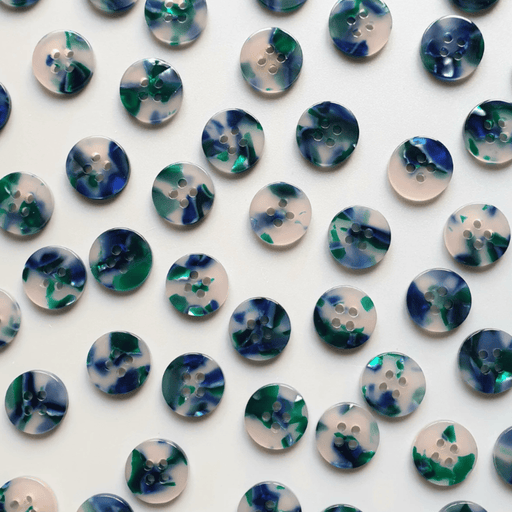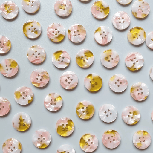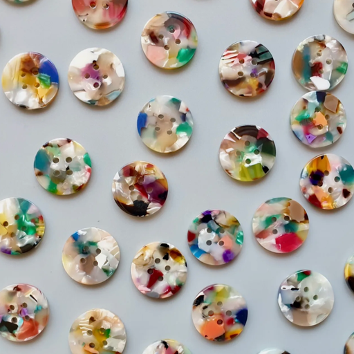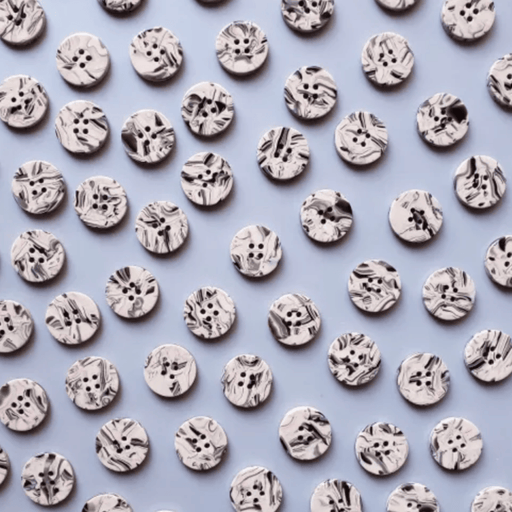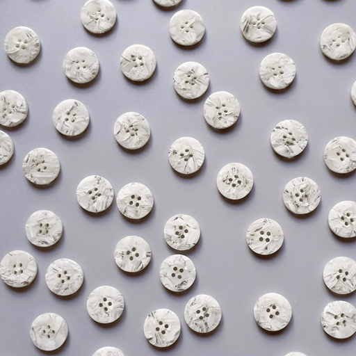 Retrosaria YarnFour-hole buttons in off-white with chips of recycled mother of pearl. The mother of pearl used in these buttons is repurposed from waste for a bea...