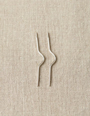 Most knitters are familiar with the metal needle with the dip in the middle for holding stitches while working a cable. Designed to be the perfect length to go on the Cocoknits Maker’s Keep – not too long that it will stab your arm, not too short that they’re too hard to use.