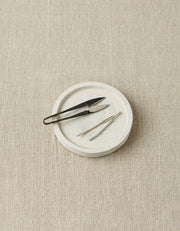 Another obvious addition to our steel tools collection and pairs with the Maker’s Keep. A bent-tip tapestry needle is a ‘must have’ for any knitter. Perfect for sewing up seams and for weaving in ends, the bent tip slides under and through stitches with ease.