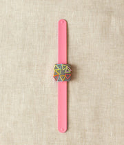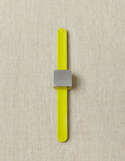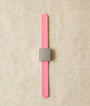 It is a slap-bracelet so it fits everyone (one size truly fits all here). You can wear it, or simply drop it in your knitting tool bag to keep all the tools together – or even unfurl it and push the magnet to one end to use it as a straight edge while reading down a pattern.