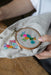 Mosaic embroidery is a technique based on simple darning stitches — all you need to get started is an embroidery hoop and some fabric, yarn, a needle and a pair of scissors! It is perfect for using even the tiniest bits of leftover yarn.
