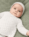 Luma sleeping bag can be knitted both with and without a hood, it can also be made with an opening for a car seat strap from your own choice. Paul's onesie is lovely, warm, and practical.