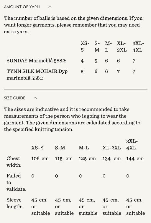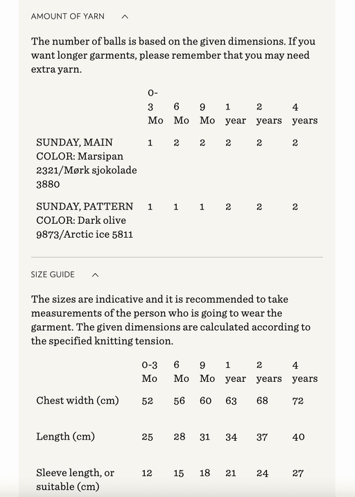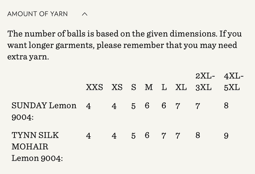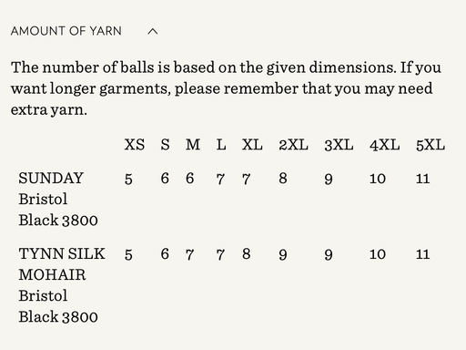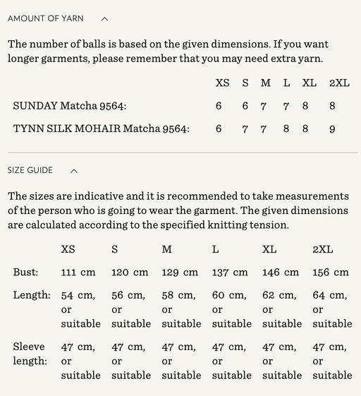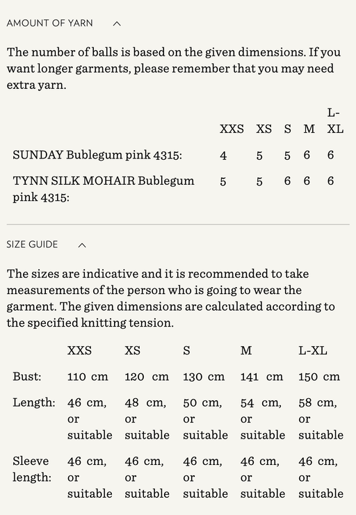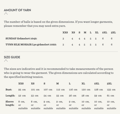 Sandnes GarnYarn requirements and size guide in photos. The model is 179 cm tall and wears a size S-M. Supplies Needed Yarn: Fingering (1 strand of Sunday,...