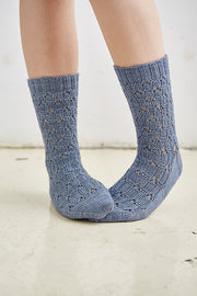 Rachel’s creative designs often incorporate a variety of skills, including cabling, grafting, lace and twisted stitches, providing a great opportunity to try out new techniques. For beginners to sock knitting, a plain, topdown sock is also included.