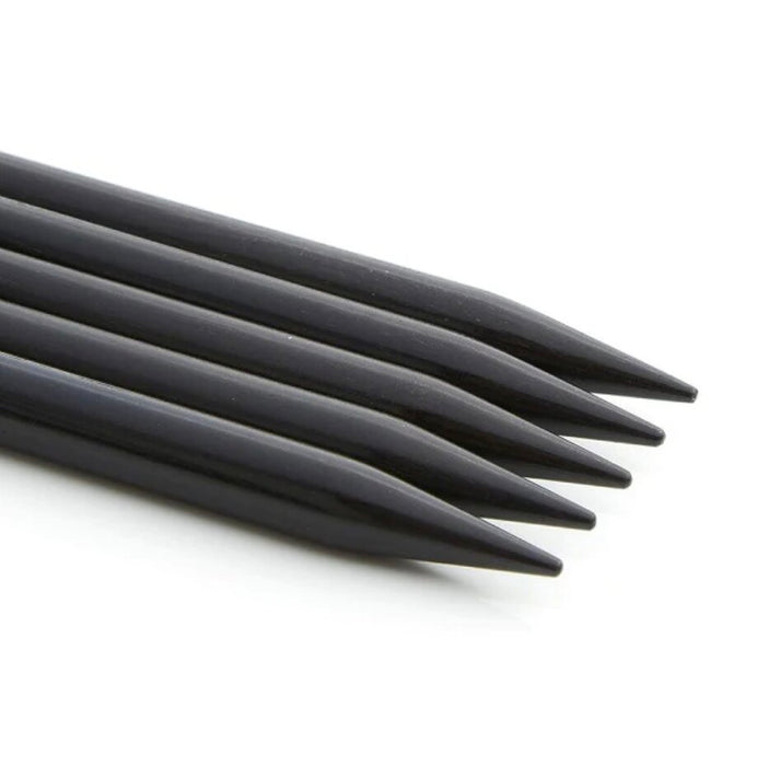 Like all Lantern Moon knitting needles, the Lantern Moon double point knitting needles are made of ebony, one of the world’s most valuable woods. The liquid silk finish is warm and easy on the hand and ensures a smooth, no-snag stitch glide. The transition from one double point needle to the next is smoothly made thanks to the even surface of the needles and the perfectly shaped tips that work well with every type of yarn.