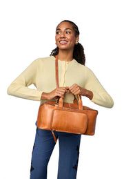 before the surface is finalized. This process preserves the leather’s natural texture, leaving each bag with unique characteristics, where no two are the same. After the dye, a light wax is applied, creating a smooth and soft finish.
